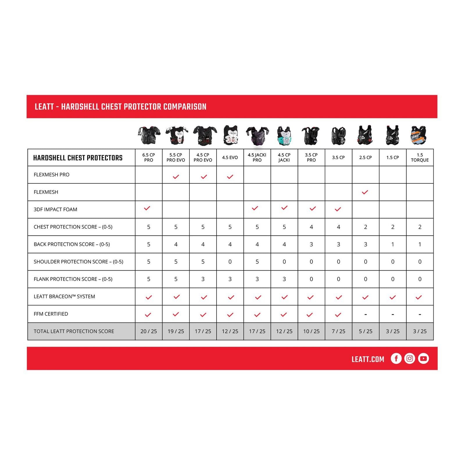 - Total Leatt® protection score of 19 points.